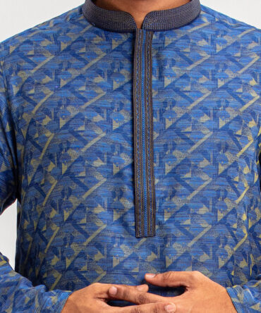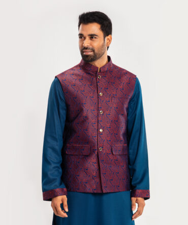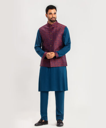 Lubnan Men’s Blue & Maroon Color Panjabi with Waistcoat Set
