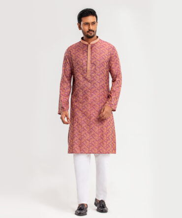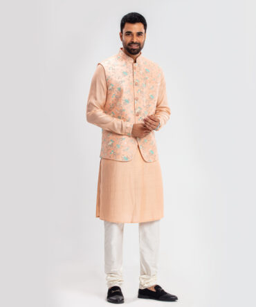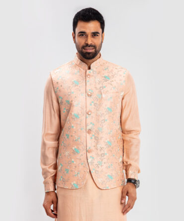 Lubnan Men’s Peach Color Panjabi Waistcoat & Pajama Set