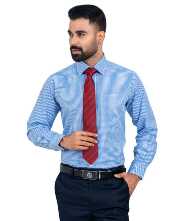 Men’s Sky Color Full Sleeve Cotton Regular Fit Formal Check Shirt