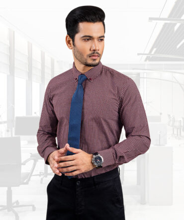 Richman Maroon Color Check Cotton Full Sleeve Slim Fit Shirt
