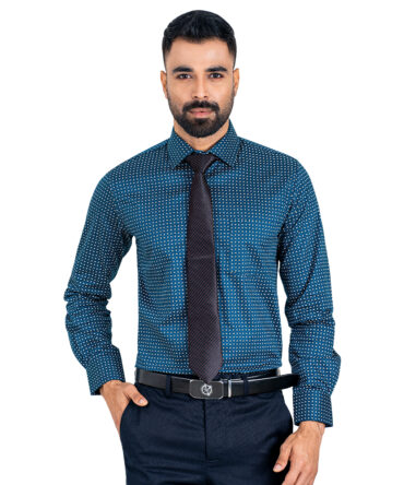 iNFINITY Men’s Navy Printed Cotton Full Sleeve Slim Fit Semi Formal Shirt