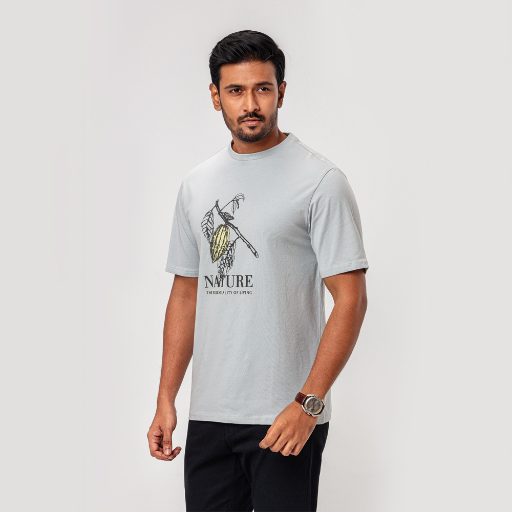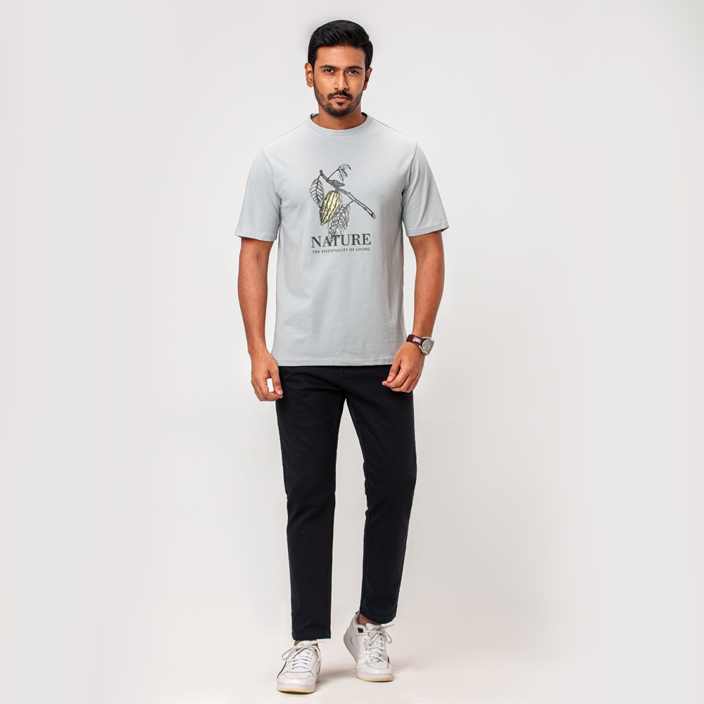 Slim fit T-shirt featuring a round neck, short sleeves and a contrast front print.