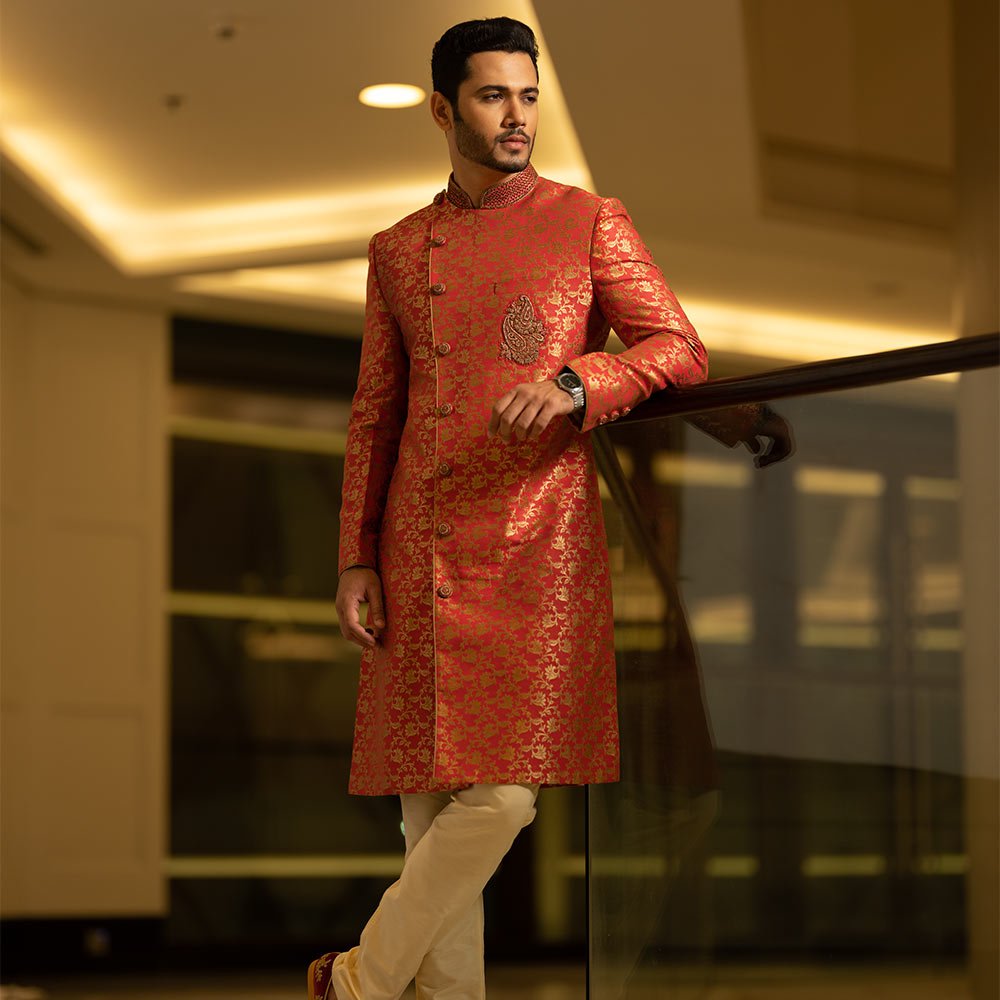 Step into the world of traditional elegance with our collection of Sherwanis. Our Sherwanis are handcrafted using premium materials, making each piece unique and special. Perfect for weddings, festivals, and special events, our Sherwanis are a fusion of traditional design and modern styling. Explore our range of styles and find the perfect Sherwani for your next occasion.