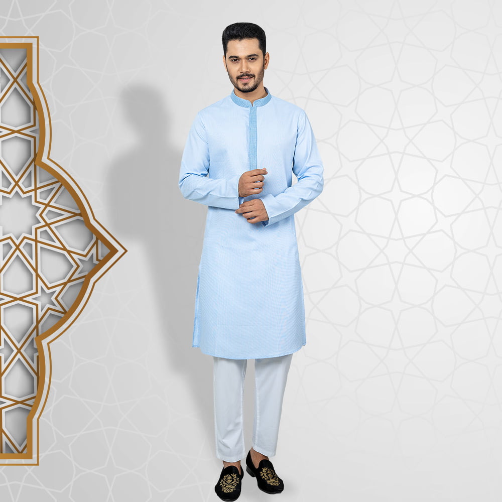Bring a touch of tradition to your wardrobe with this Premium Panjabi. Made from 100% soft and breathable cotton, it is perfect for any occasion. The Panjabi features gorgeous designs, adding a touch of elegance to the simple yet sophisticated design. The Blue color is neutral and versatile, making it easy to style. With a comfortable Slim fit, it is both practical and stylish. Available in sizes XS to XXL, you’re sure to find the perfect size for you.