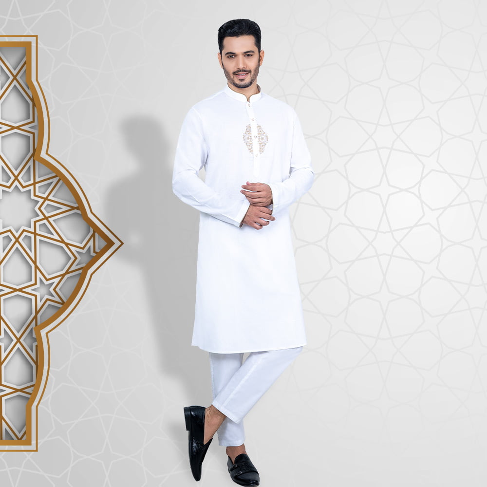 Bring a touch of tradition to your wardrobe with this Premium Panjabi. Made from 100% soft and breathable cotton, it is perfect for any occasion. The Panjabi features gorgeous designs, adding a touch of elegance to the simple yet sophisticated design. The beige color is neutral and versatile, making it easy to style. With a comfortable regular fit, it is both practical and stylish. Available in sizes 38 to 48, you’re sure to find the perfect size for you.