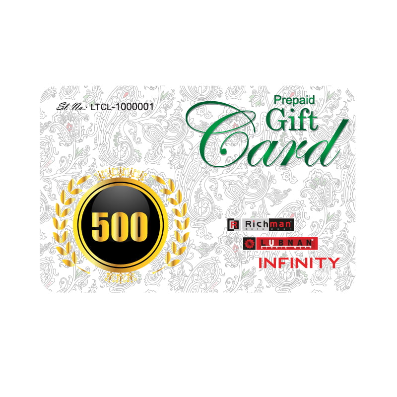 Gift Cards are an alternative to a GIFT. You can purchase & gift this card to your nearest, The person who has this card can use it as an equivalent of Cash in any of our stores of iNFINITY, Richman or LUNBAN.