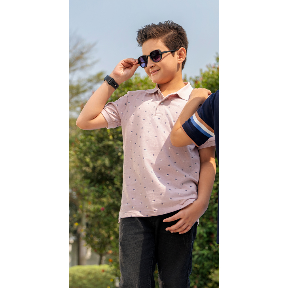 iNFINITY Boys Pink Color Printed Polo