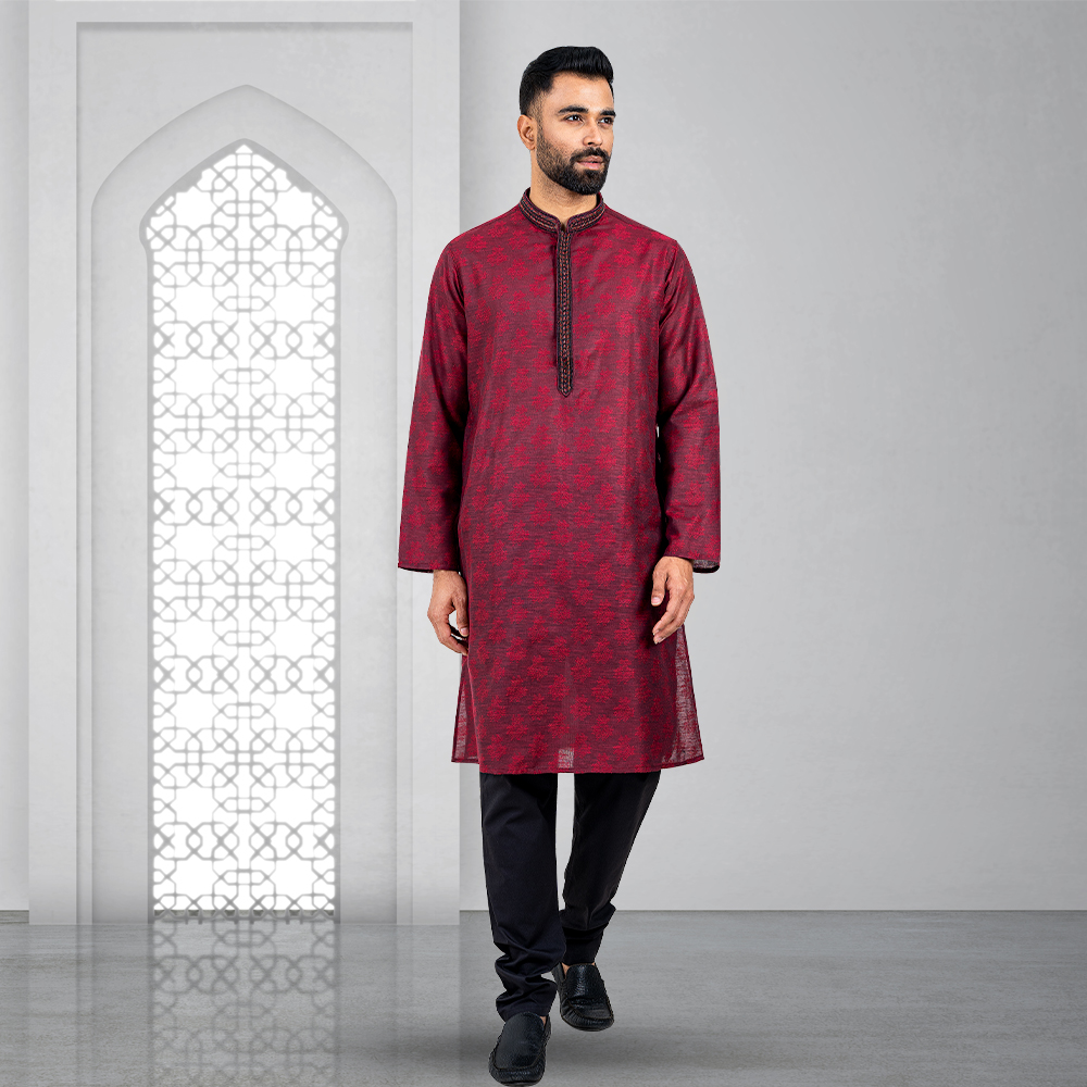 Bring a touch of tradition to your wardrobe with this Premium Panjabi. Made from 100% soft and breathable cotton, it is perfect for any occasion. The Panjabi features gorgeous designs, adding a touch of elegance to the simple yet sophisticated design. The Maroon color is neutral and versatile, making it easy to style. With a comfortable Slim fit, it is both practical and stylish. Available in sizes 38 to 46, you’re sure to find the perfect size for you.