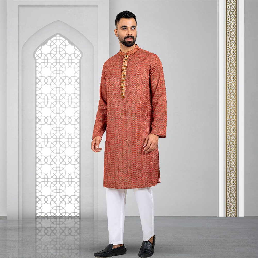 Bring a touch of tradition to your wardrobe with this Premium Panjabi. Made from 100% soft and breathable cotton, it is perfect for any occasion. The Panjabi features gorgeous designs, adding a touch of elegance to the simple yet sophisticated design. The Maroon color is neutral and versatile, making it easy to style. With a comfortable Slim fit, it is both practical and stylish. Available in sizes 38 to 48, you’re sure to find the perfect size for you.