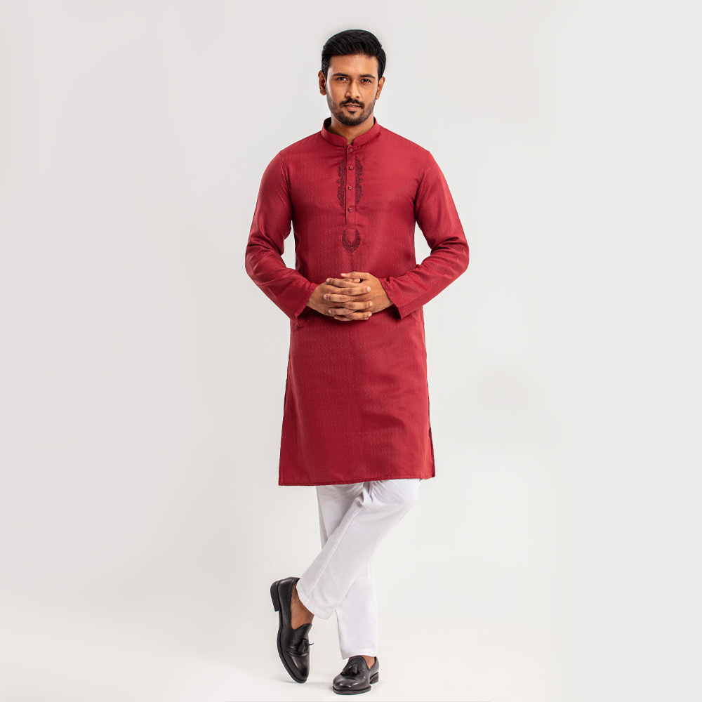 Bring a touch of tradition to your wardrobe with this Premium Panjabi. Made from 100% soft and breathable cotton, it is perfect for any occasion. The Panjabi features gorgeous designs, adding a touch of elegance to the simple yet sophisticated design. The Light Pink color is neutral and versatile, making it easy to style. With a comfortable Regular fit, it is both practical and stylish. Available in sizes 38 to 46, you’re sure to find the perfect size for you.