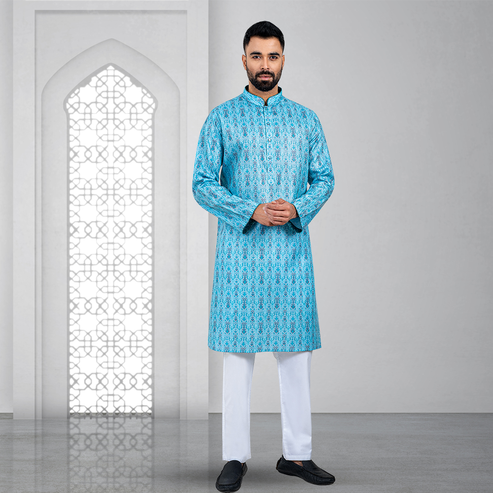 Bring a touch of tradition to your wardrobe with this Premium Panjabi. Made from 100% soft and breathable cotton, it is perfect for any occasion. The Panjabi features gorgeous designs, adding a touch of elegance to the simple yet sophisticated design. The Sky Blue color is neutral and versatile, making it easy to style. With a comfortable Slim fit, it is both practical and stylish. Available in sizes 38 to 46, you’re sure to find the perfect size for you.