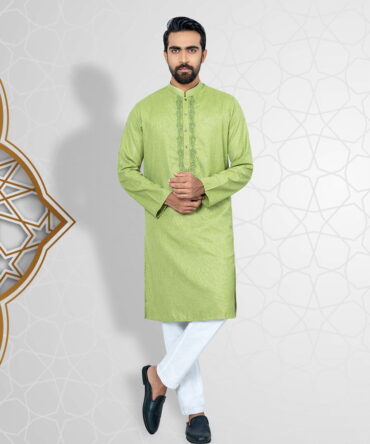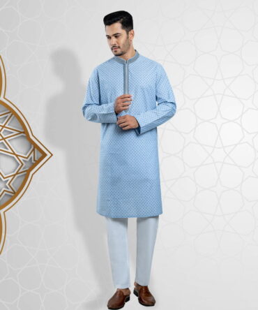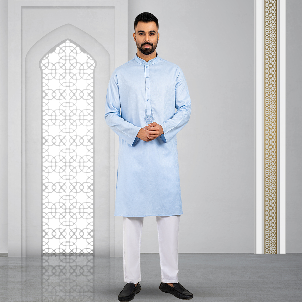 Bring a touch of tradition to your wardrobe with this Premium Panjabi. Made from 100% soft and breathable cotton, it is perfect for any occasion. The Panjabi features gorgeous designs, adding a touch of elegance to the simple yet sophisticated design. The Sky Blue color is neutral and versatile, making it easy to style. With a comfortable Slim fit, it is both practical and stylish. Available in sizes 38 to 46, you’re sure to find the perfect size for you.