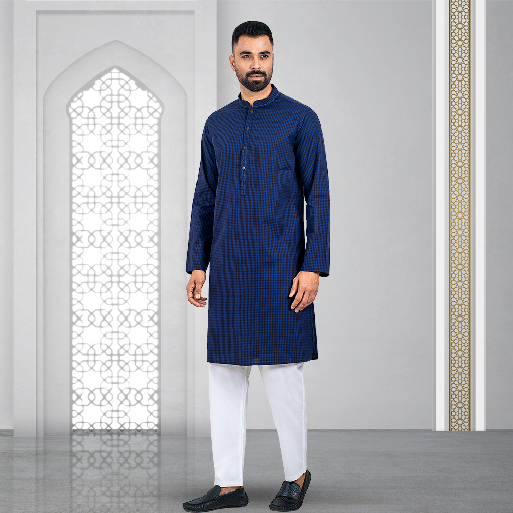 Bring a touch of tradition to your wardrobe with this Premium Panjabi. Made from 100% soft and breathable cotton, it is perfect for any occasion. The Panjabi features gorgeous designs, adding a touch of elegance to the simple yet sophisticated design. The Blue color is neutral and versatile, making it easy to style. With a comfortable Slim fit, it is both practical and stylish. Available in sizes 38 to 48, you’re sure to find the perfect size for you.