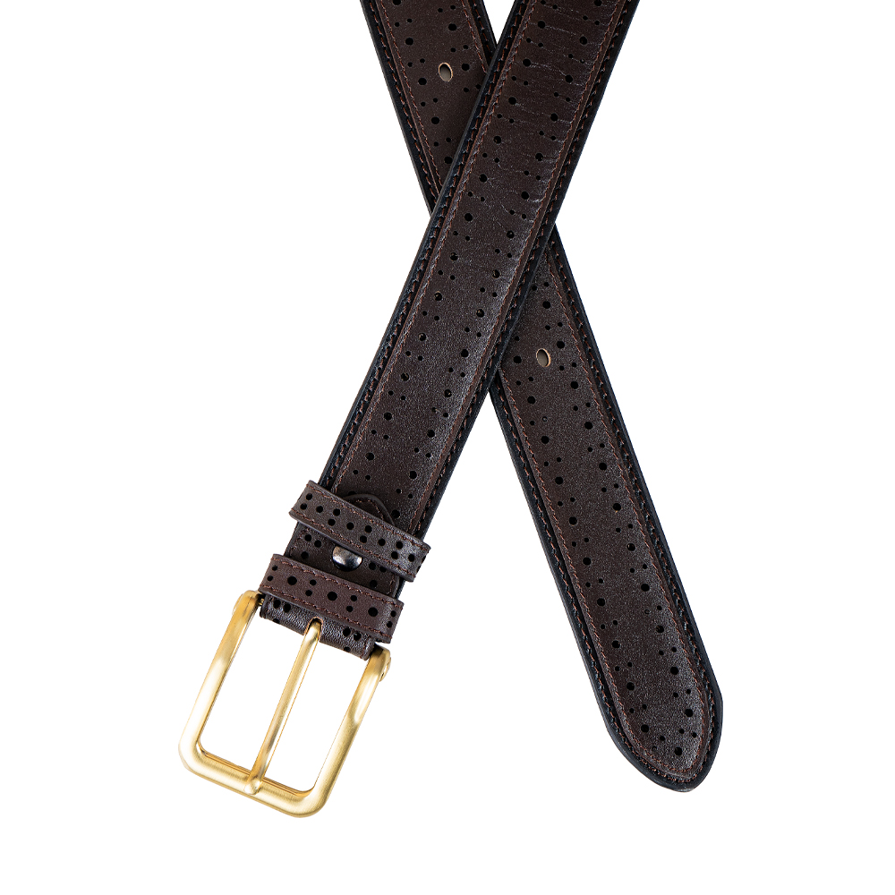 It is crafted in natural grained calfskin and features a classic glossy-finish metal buckle. The classic accessory gracefully accentuates the waist and will pair well with jeans or trouser.