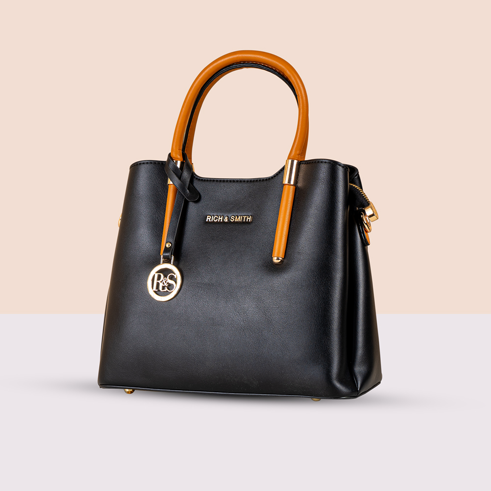 SMOOTH, SLEEKÂ LEATHER TRIM MAKE THIS SPACIOUS HAND BAG FOR EVERYDAY VERSATILITY AND ELEGANCE.