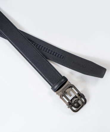 It is crafted in natural grained calfskin and features a classic glossy-finish metal buckle. The classic accessory gracefully accentuates the waist and will pair well with jeans or trousers.