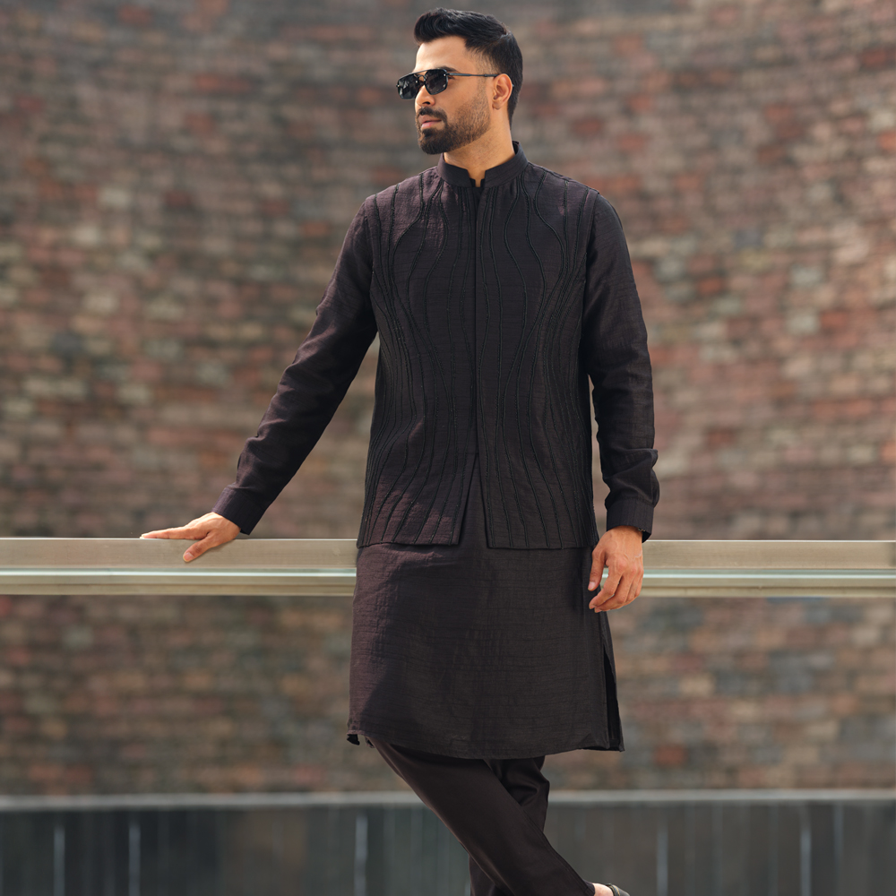 Premium Black Panjabi-Pajama & Waistcoat Set