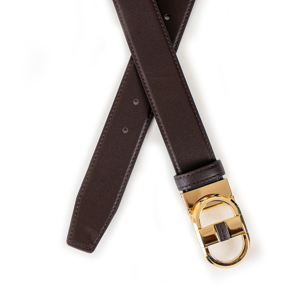 It is crafted in natural grained calfskin and features a classic glossy-finish metal buckle. The classic accessory gracefully accentuates the waist and will pair well with jeans or trouser.