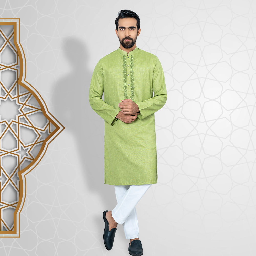 Bring a touch of tradition to your wardrobe with this Premium Panjabi. Made from 100% soft and breathable cotton, it is perfect for any occasion. The Panjabi features gorgeous designs, adding a touch of elegance to the simple yet sophisticated design. The beige color is neutral and versatile, making it easy to style. With a comfortable regular fit, it is both practical and stylish. Available in sizes 38 to 46, you’re sure to find the perfect size for you.