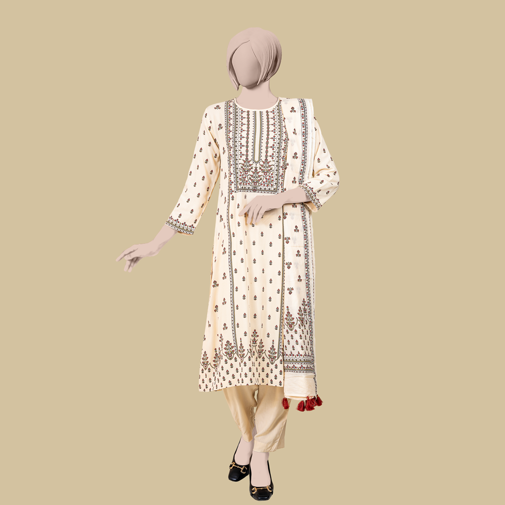 Premium Printed Cream Colour Kameez by MUSLIN