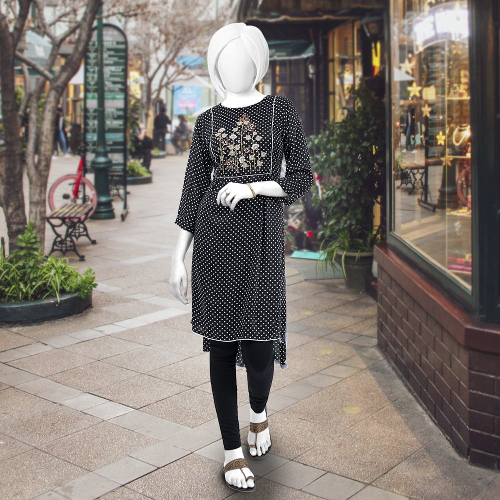 An aesthetically rich design is portrayed on this graceful lawn ensemble rendered in a soft Black printed shade. It features a classy single kameez adorned with beautiful ethnic hues. Paired with black trousers, this chic outfit is perfect for your evening date.
