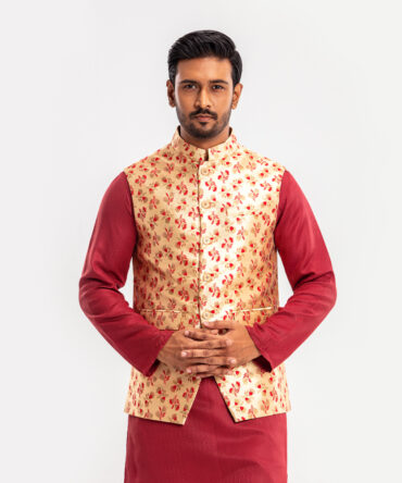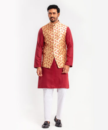 Lubnan Men’s Blue & Maroon Color Panjabi with Waistcoat Set